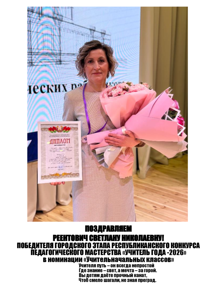 Лауреат конкурса Учитель Года 2026 Реентович С.Н.